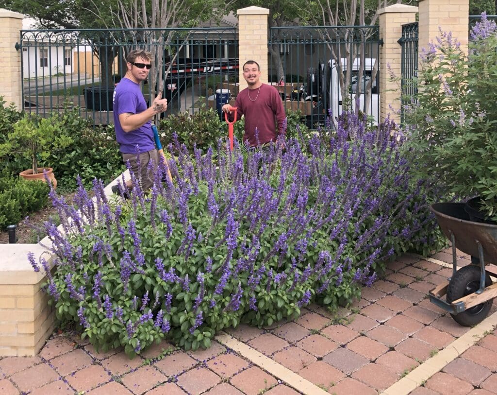 The more compact and bushier cousin of Henry Duelberg salvia, this hybrid salvia blooms in rich, deep blue-purple all summer long. Great for borders, containers, and butterfly gardens. This might be the best-performing salvia variety for South Texas. We’ve planted thousands over the years!