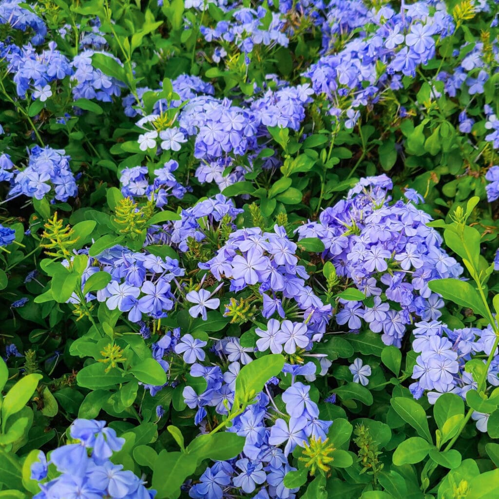 We like to call Plumbago the South Texas Hydrangea. We can’t grow Hydrangeas very well in our area (wish we could!), but Plumbago thrives here and gives you a similar effect in the landscape with TONS of big, gorgeous blue blooms. Think part sun/part shade spots. There’s also a white version if blue’s not for you.